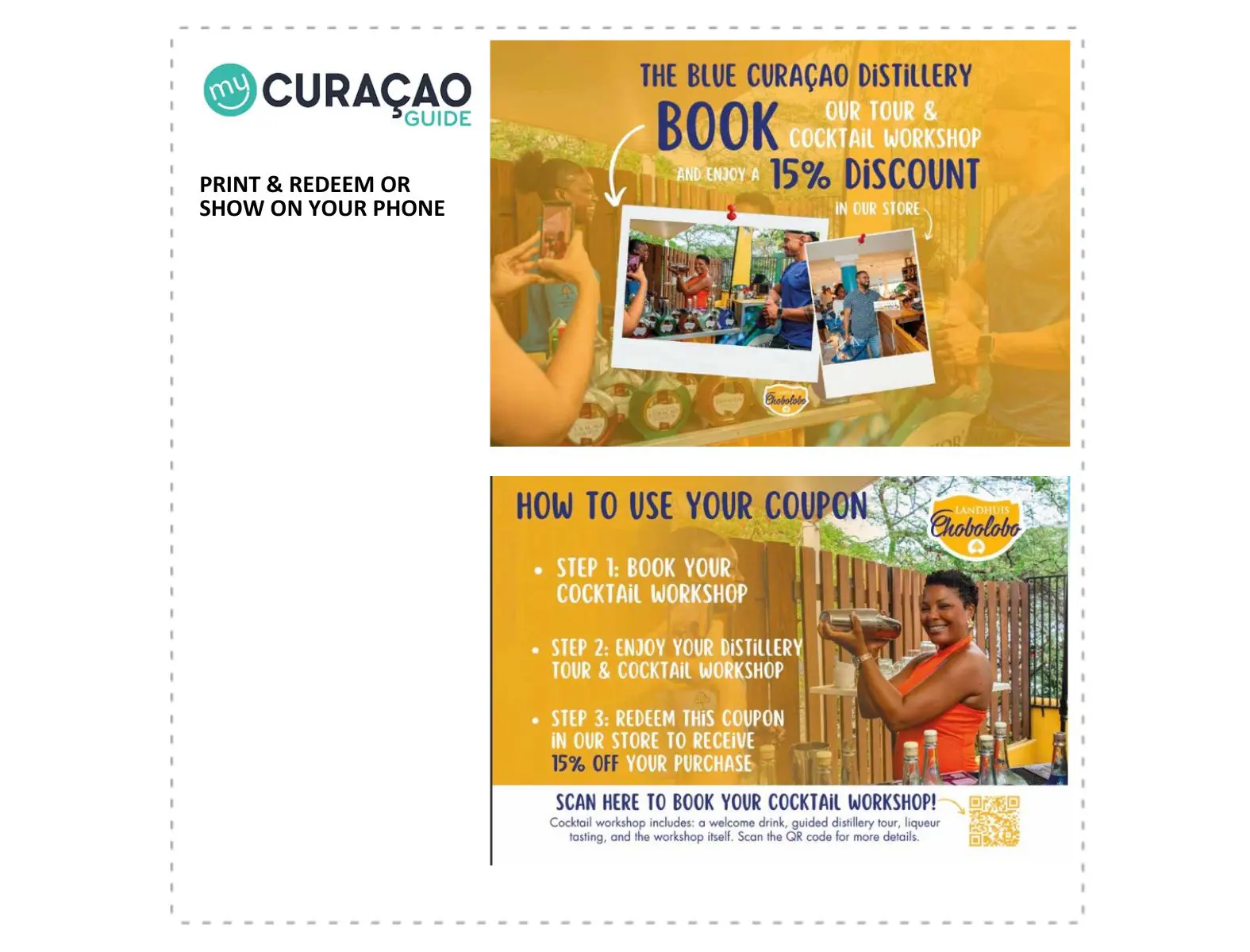 Visit the iconic Blue Curaçao Distillery at Landhuis Chobolobo, the birthplace of the world-famous Blue Curaçao liqueur. Learn about the history, see how the liqueur is made, and enjoy tastings in a historic plantation setting. Use this coupon and enjoy a special benefit during your visit.