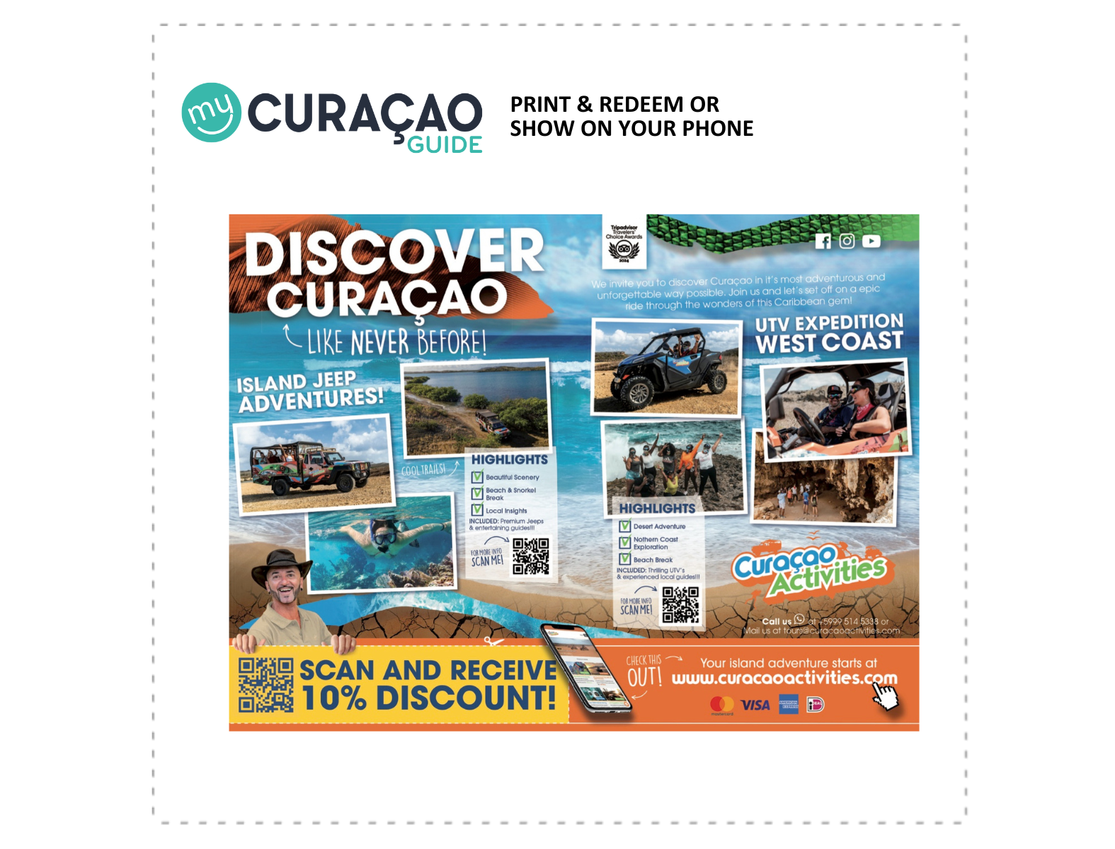 Reserve online e receba 10% de desconto na sua reserva da Curacao Activities.